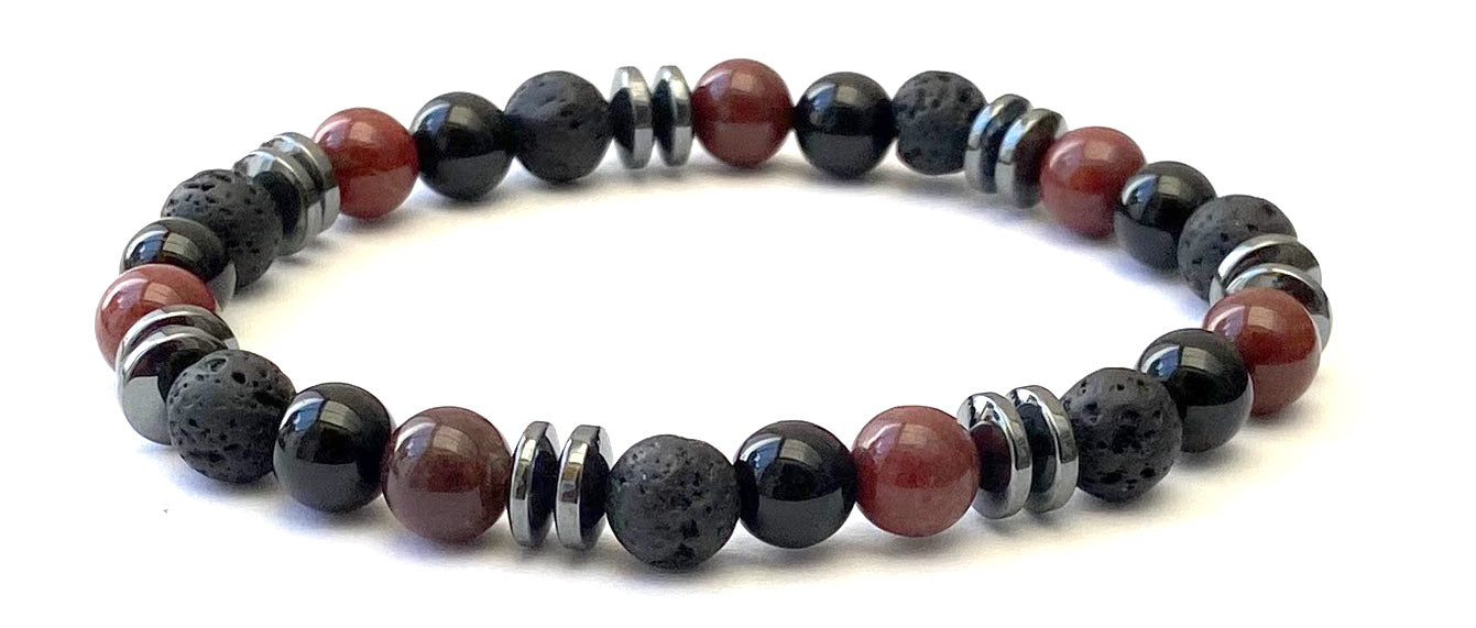la Pierre de lave apaisante, et l’Hématite, pierre de protection et d’équilibre.