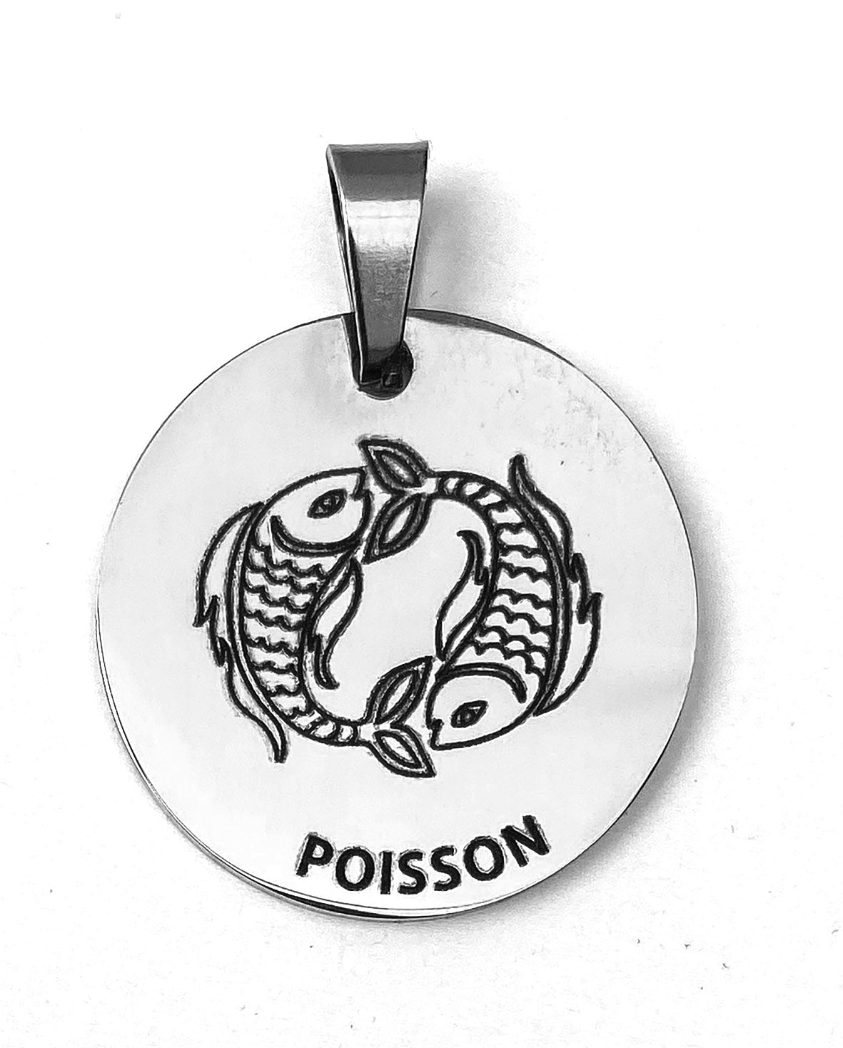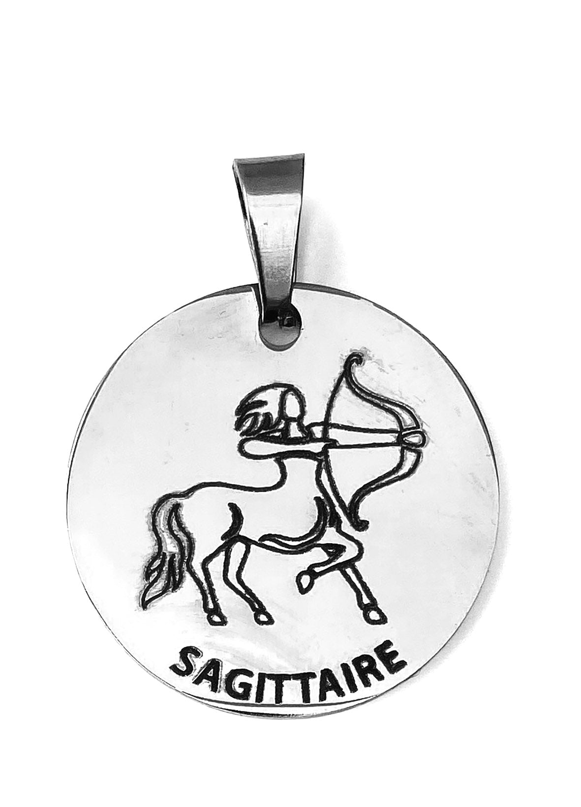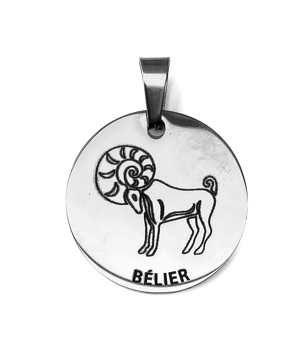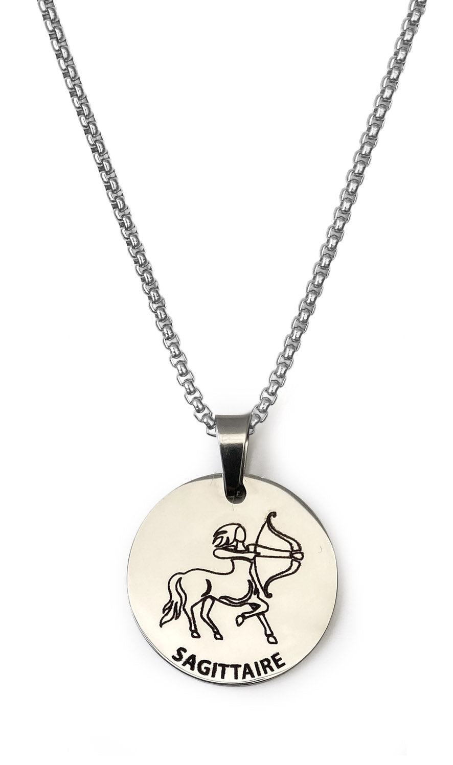 Un médaillon argenté gravé à la commande avec soin qui révèle votre signe avec éclat, comme un symbole lumineux à porter au quotidien.
